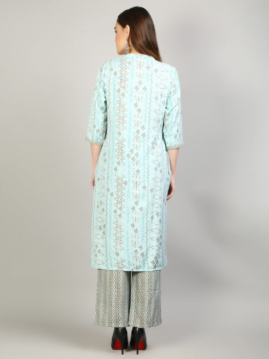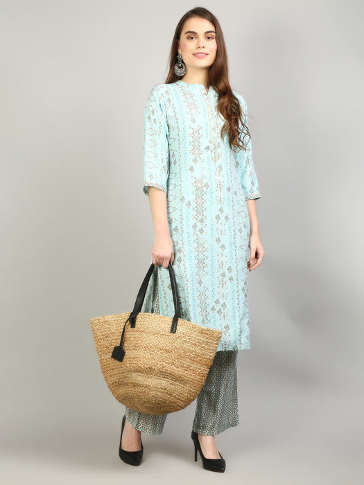 Women Muslin Blue Floral Print Kurta With Comfort Pant