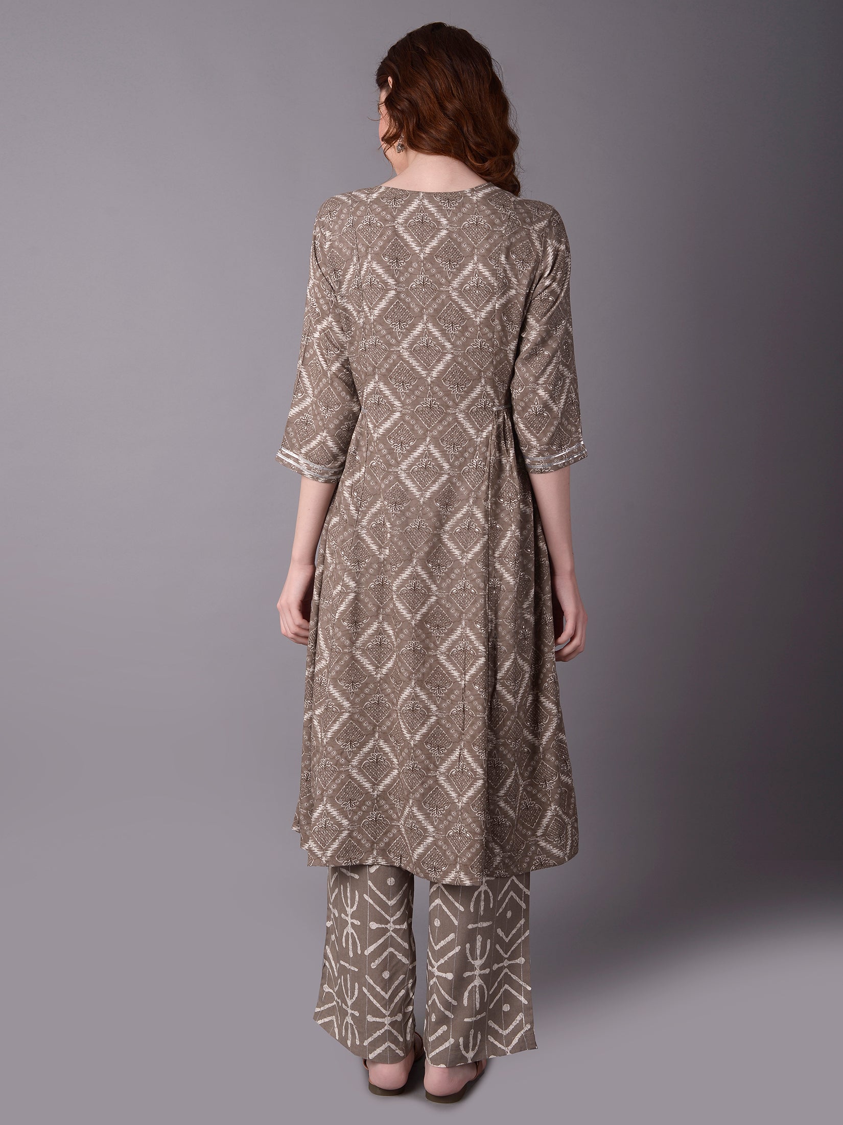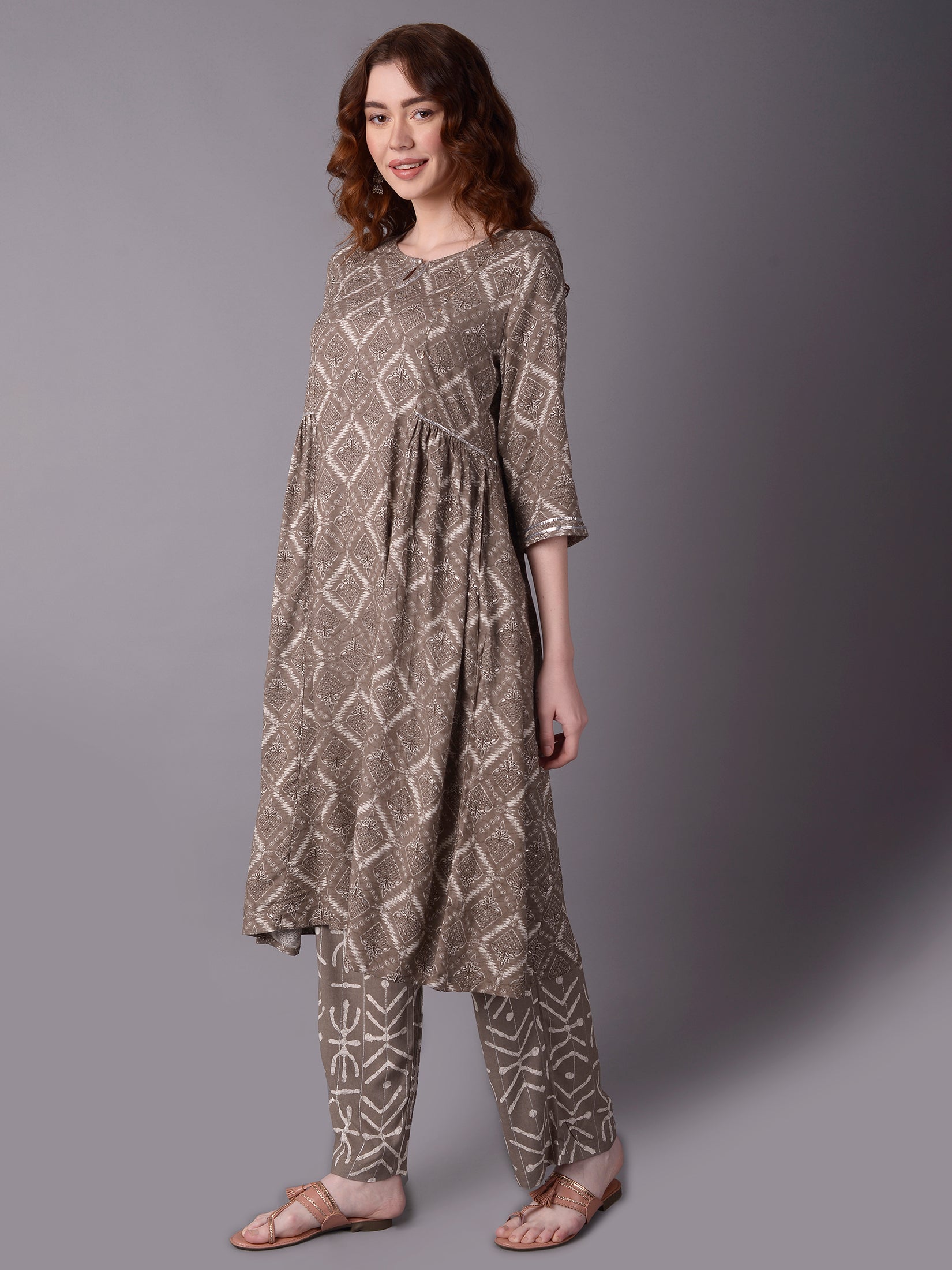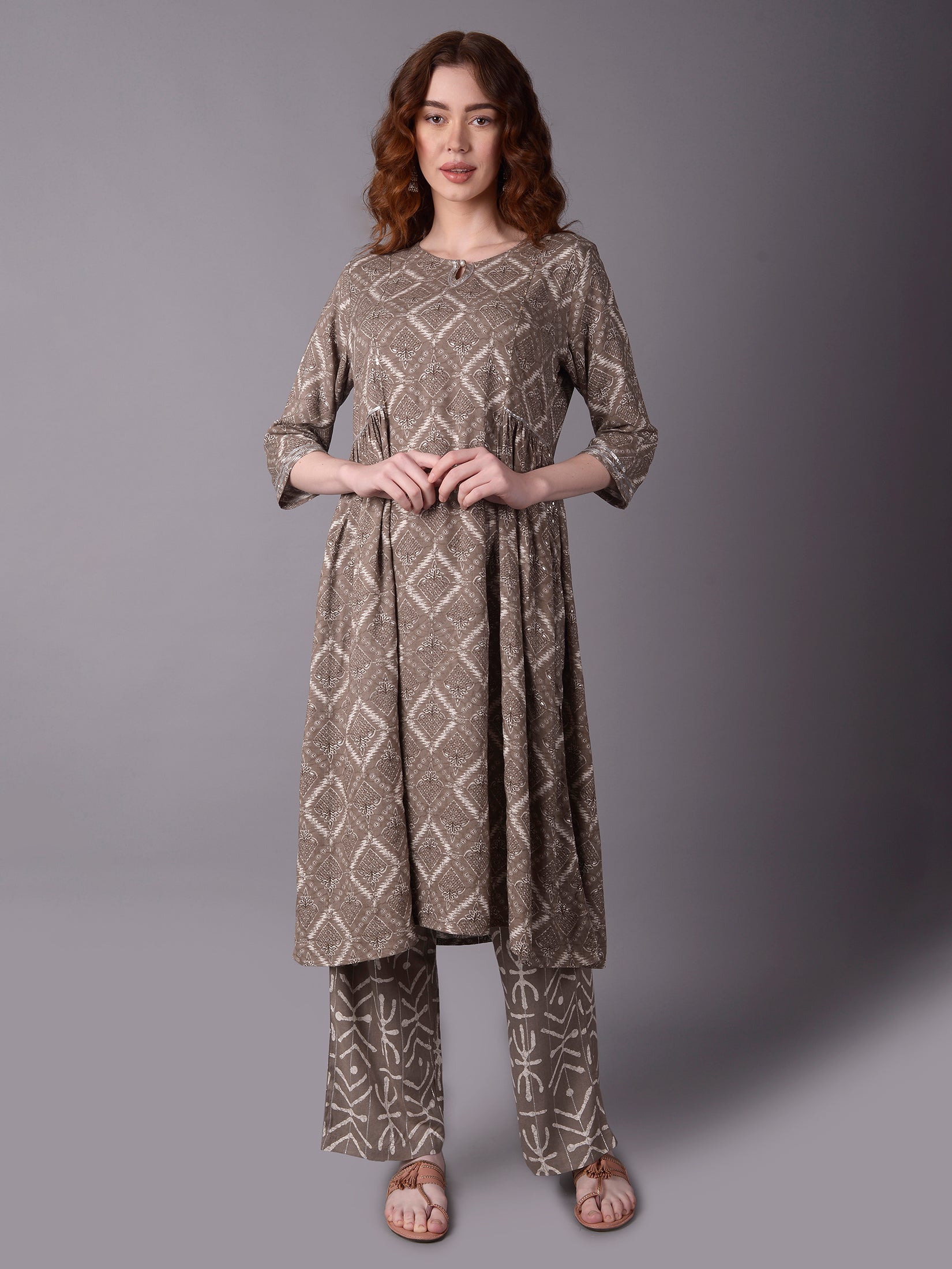 Women Grey Fit And Flare Kurta With Comfort Pant
