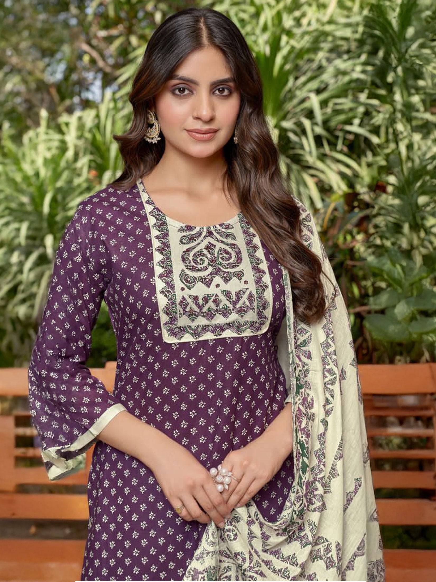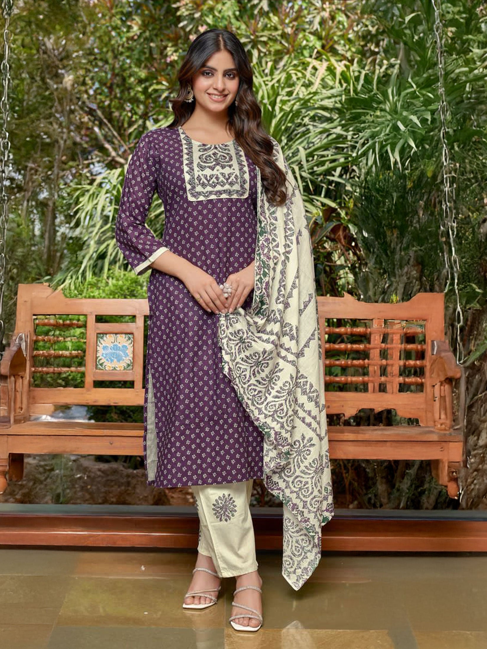 Indiessence Purple Cambric Straight Floral Kurta Comfort Pant Dupatta Skip to content