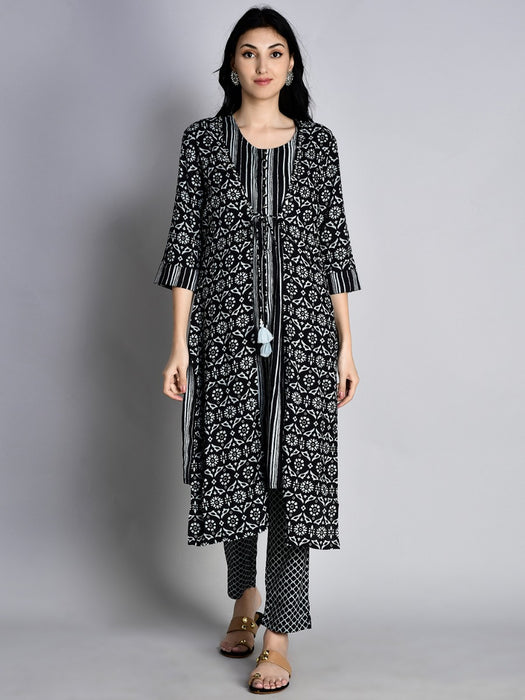 Women Cotton Black Floral Print Kurta With Trouser Sale priceRs. 1,149.00 Regular priceRs. 2,299.00