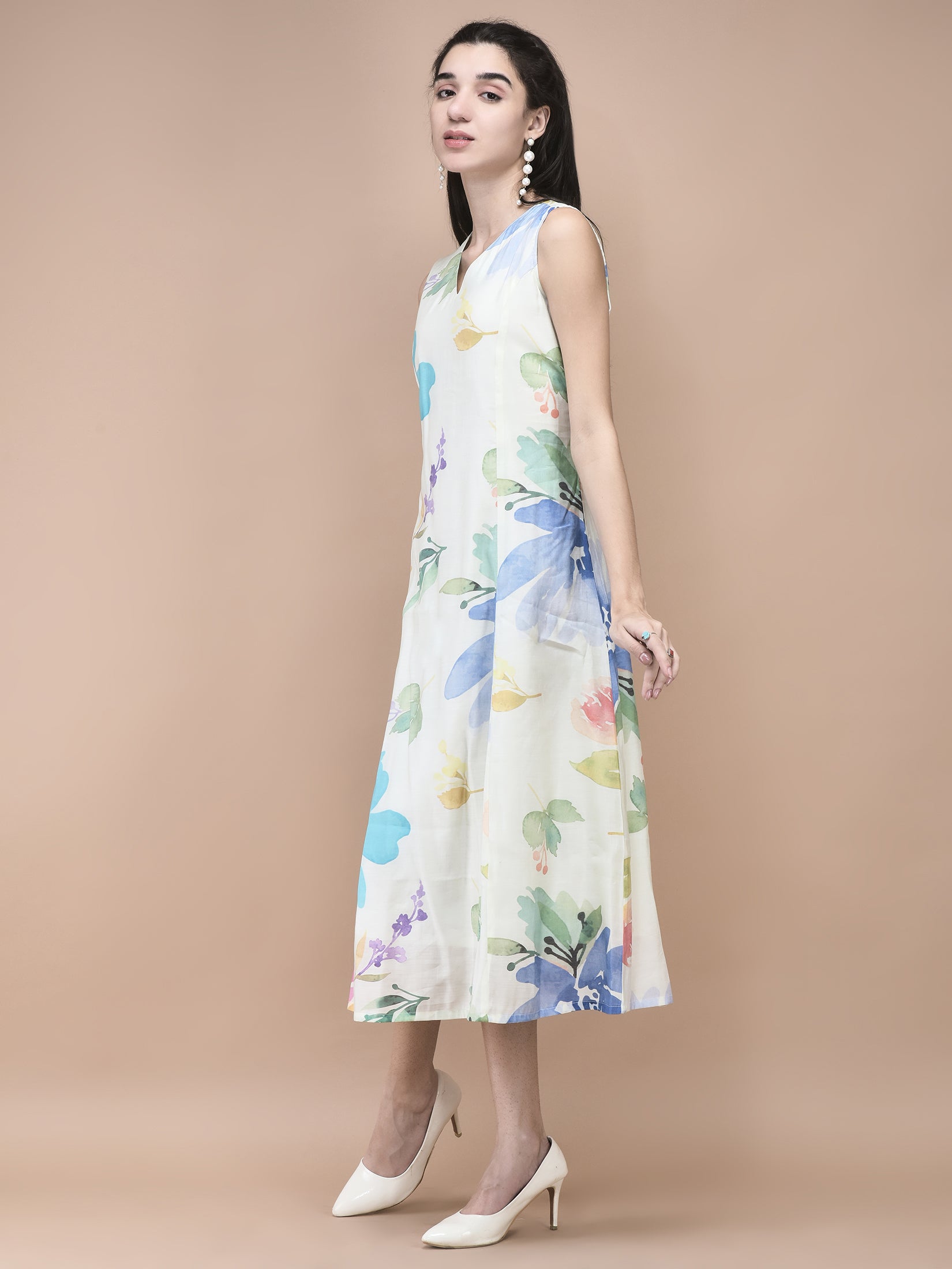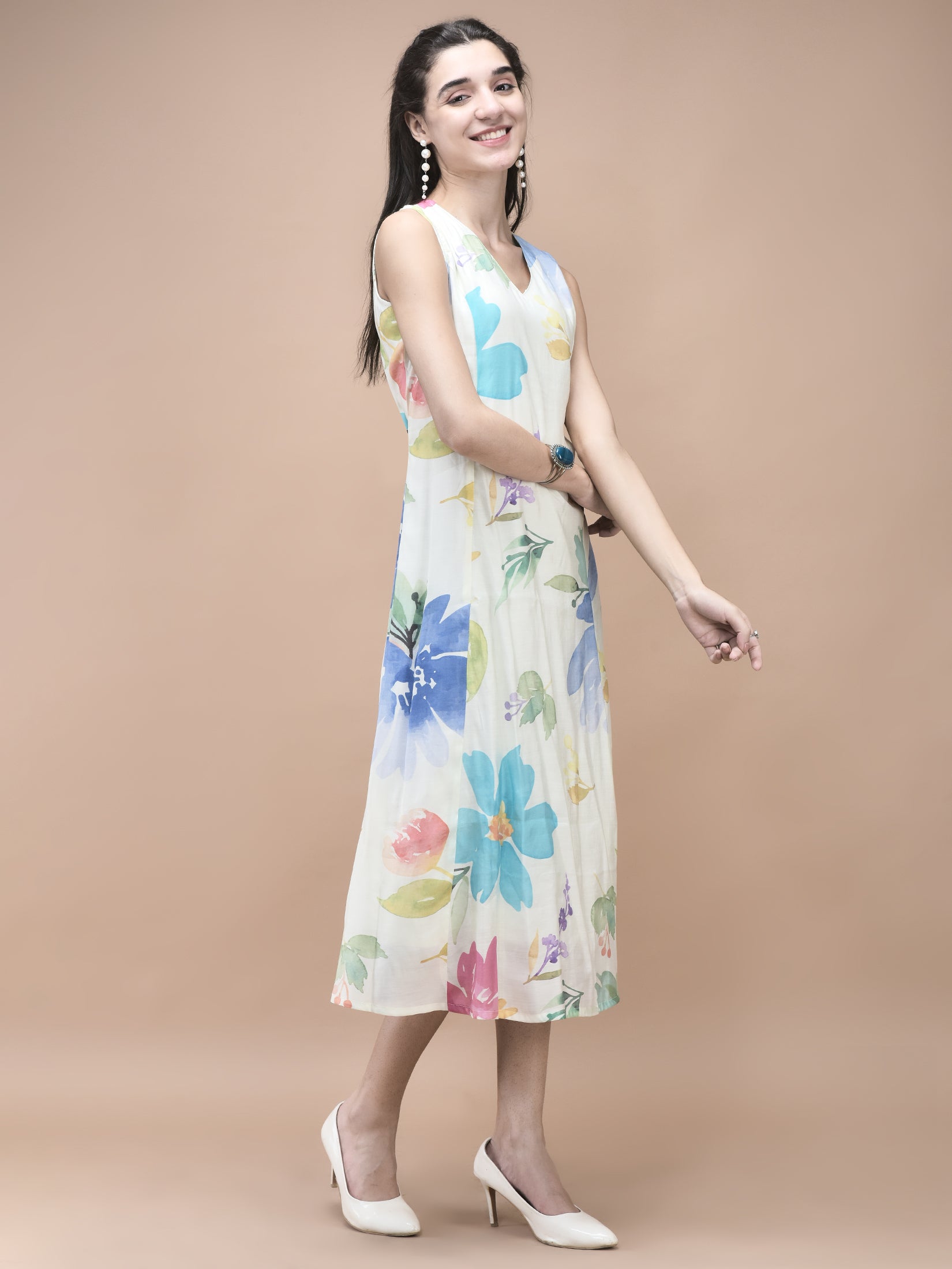 Step out in grace with the Women Chanderi Off White Floral Print Dress from SHREE ? She is Special. Crafted from premium Chanderi fabric, this dress blends timeless floral prints with an airy, lightweight feel?perfect for any occasion, from casual meetups to festive celebrations.