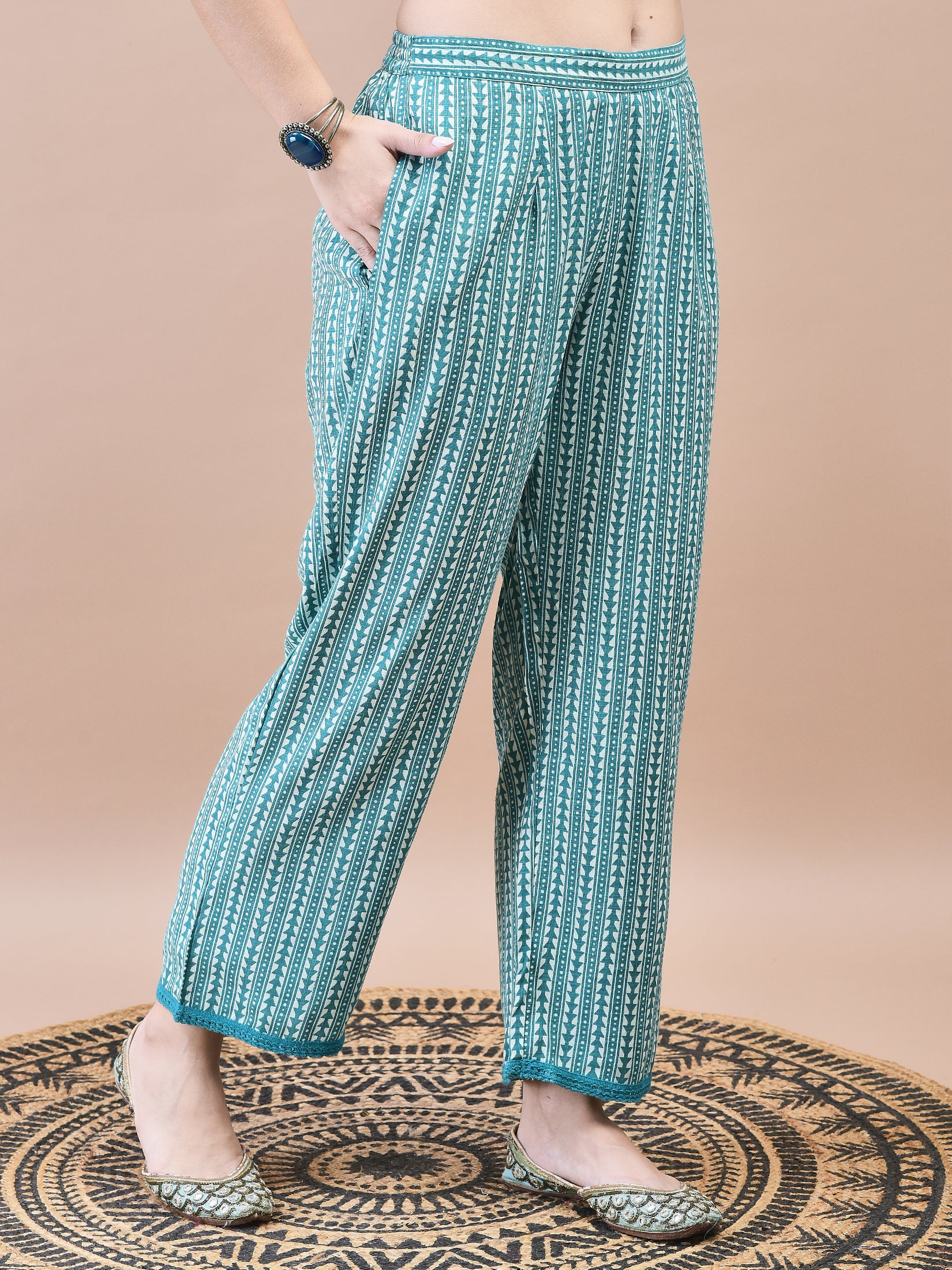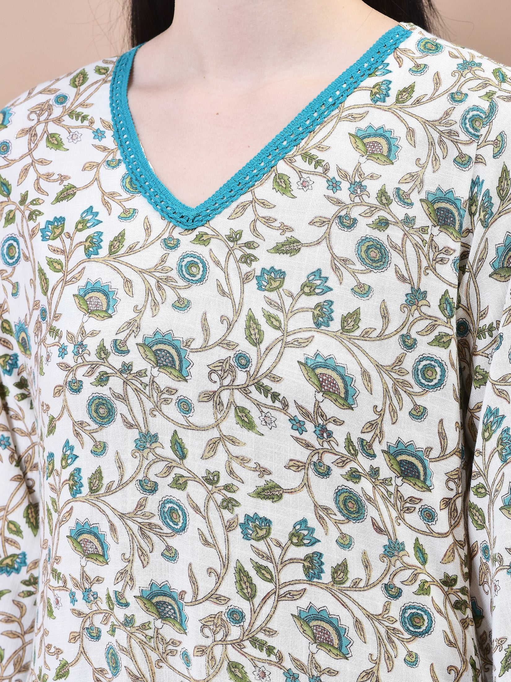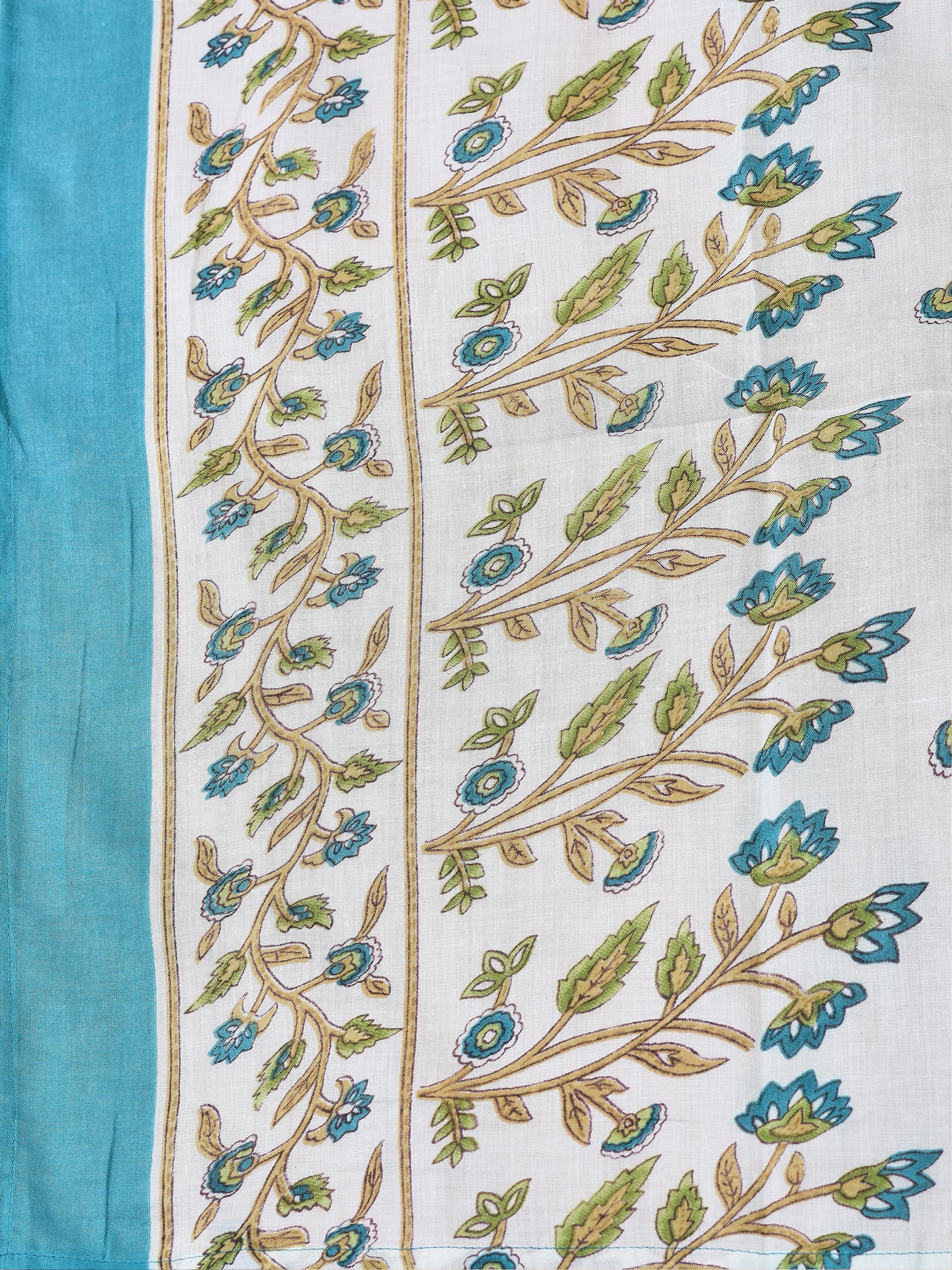 Women Cotton Off-White Teal Floral Print Kurta Comfort Pant Dupatta Skip to content