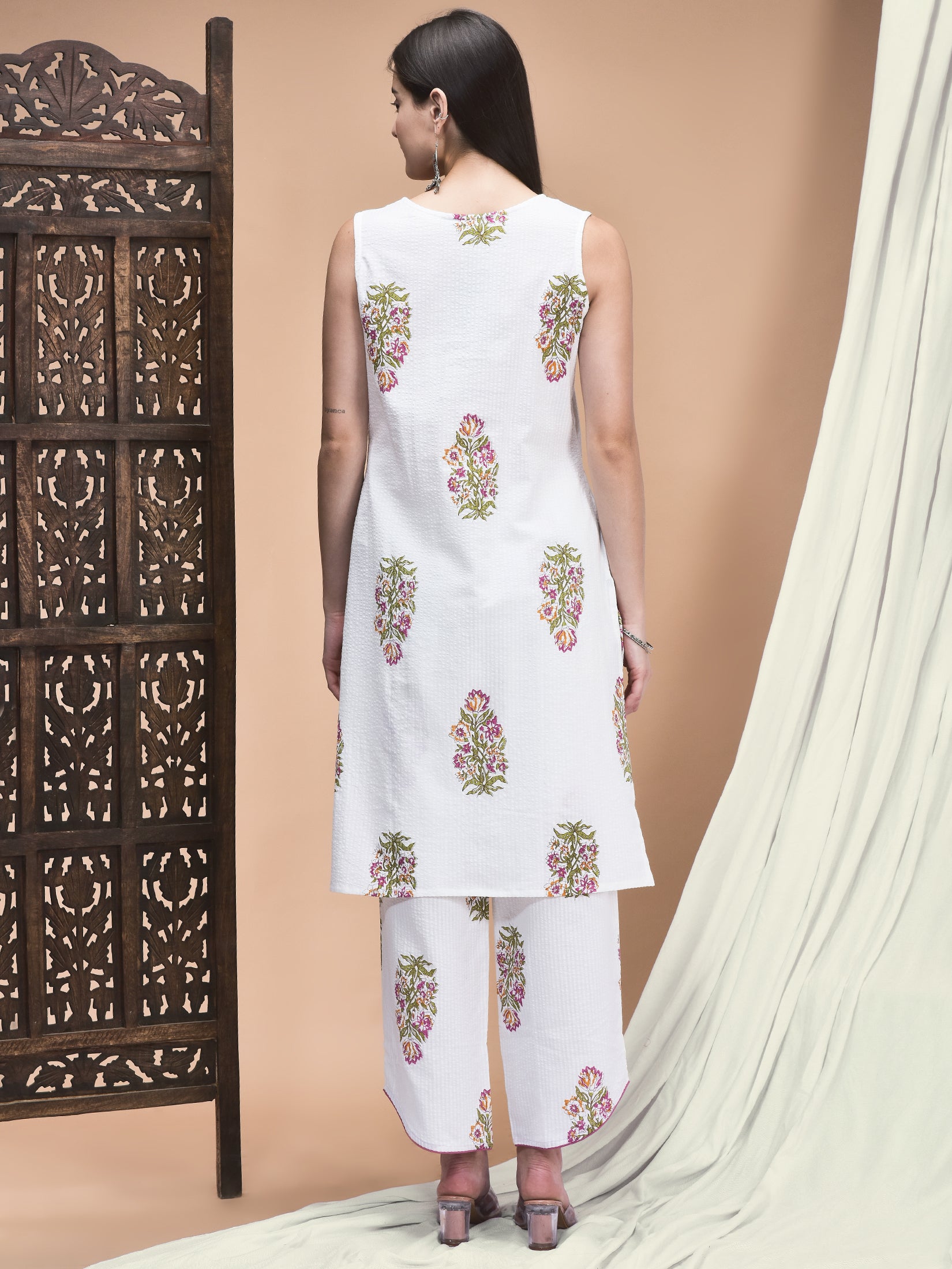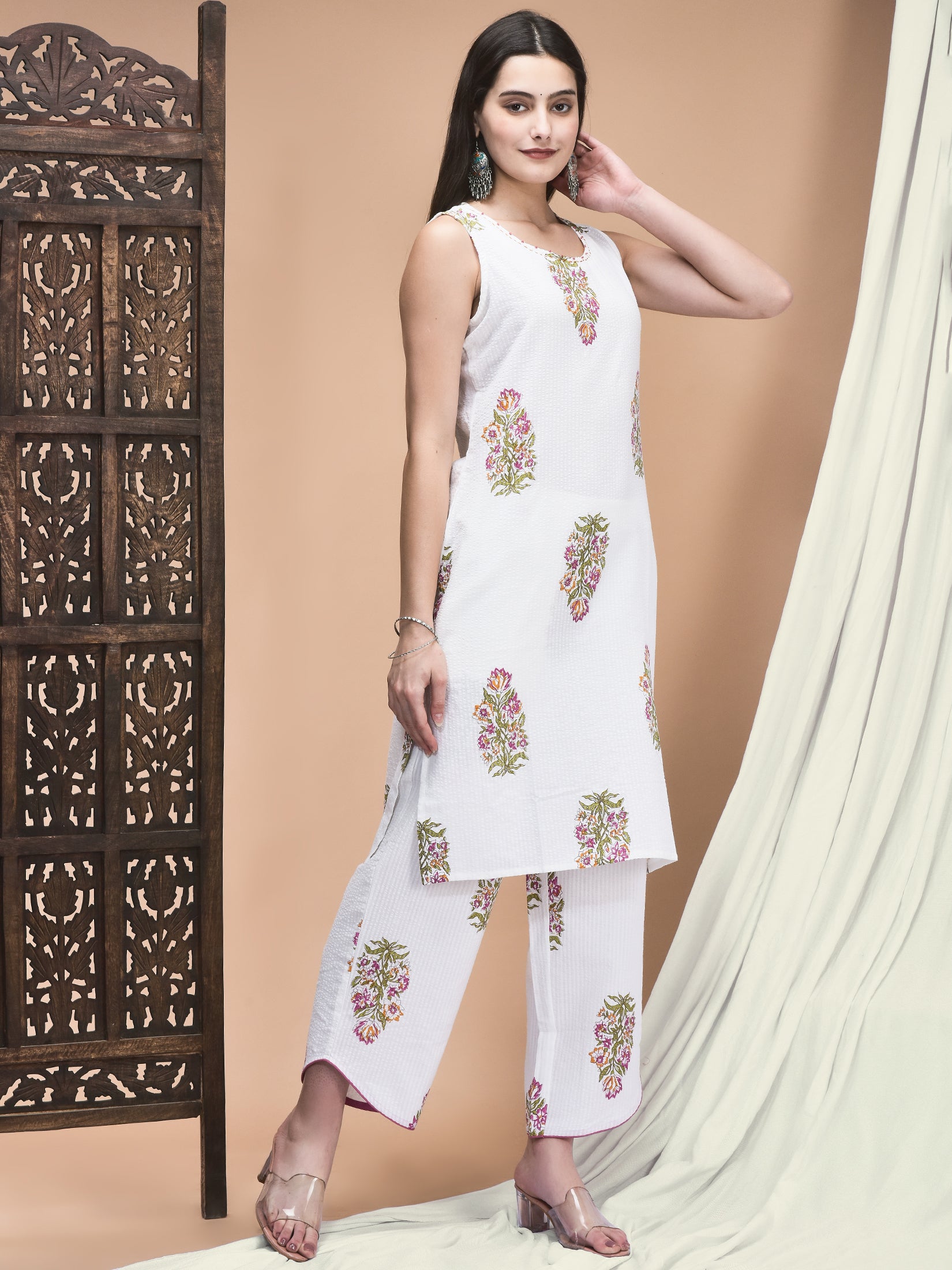 Women Cotton White Floral Print Kurta With Comfort Pant