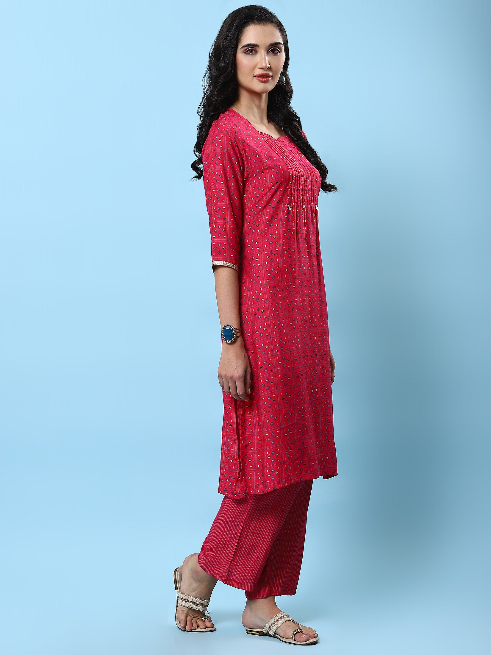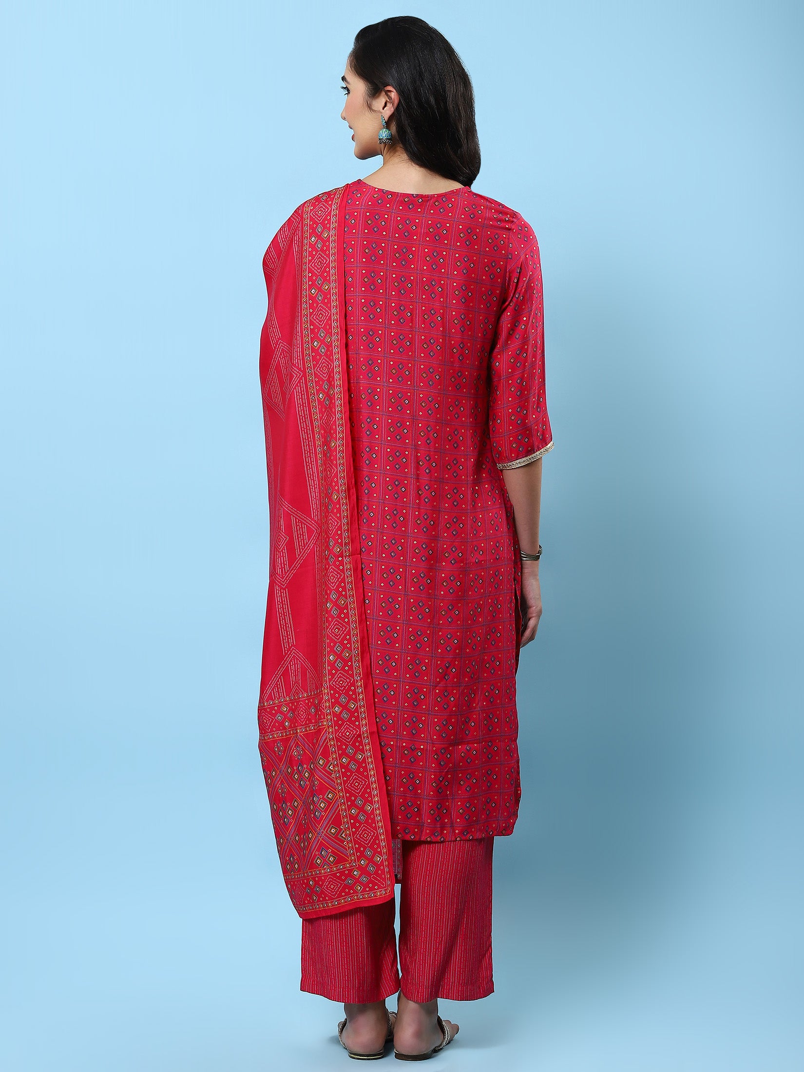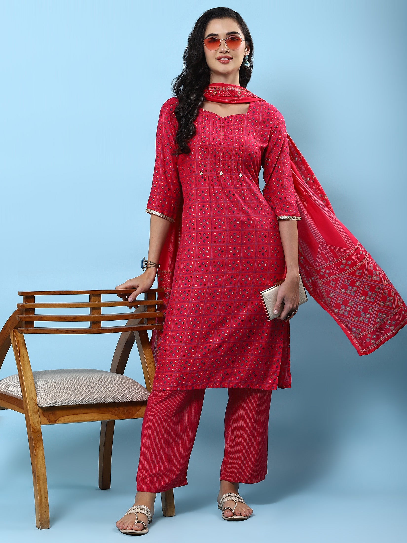 Women Fuchsia Geometric Printed Kurta Comfort Pant Dupatta