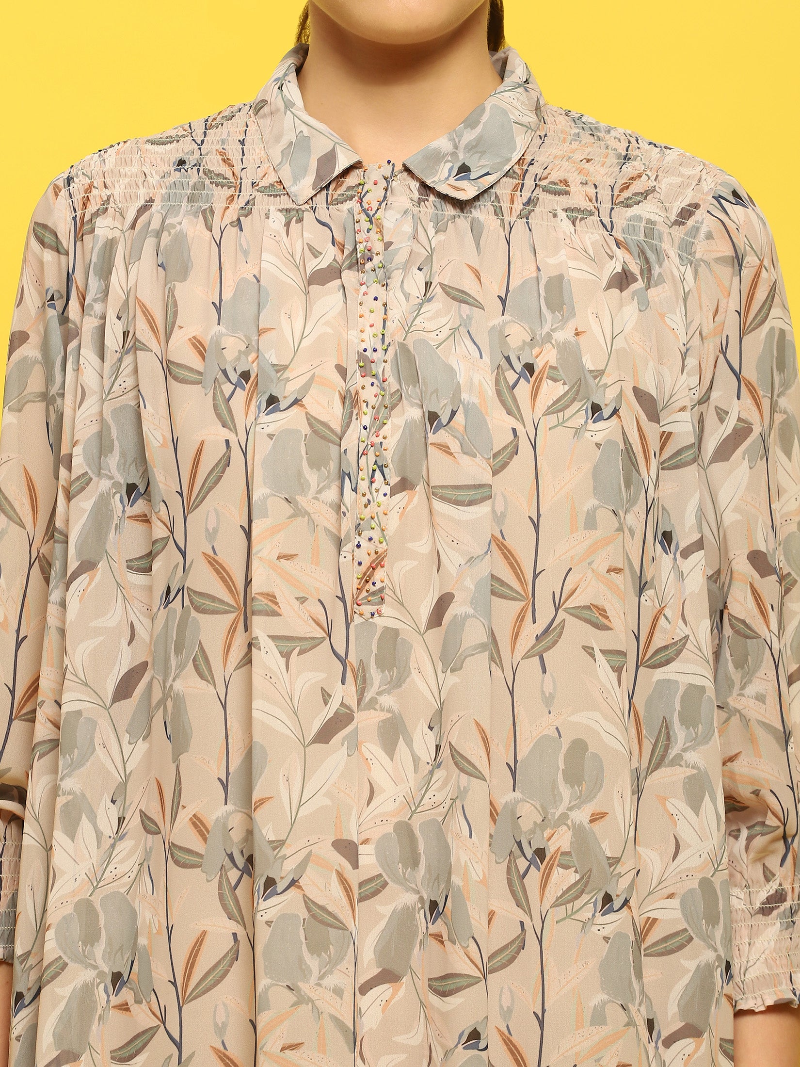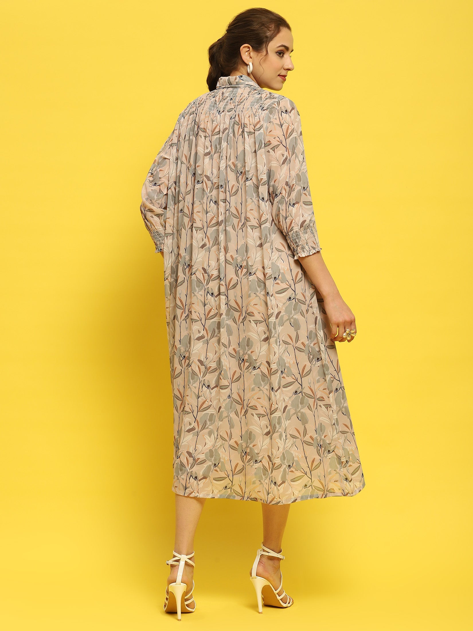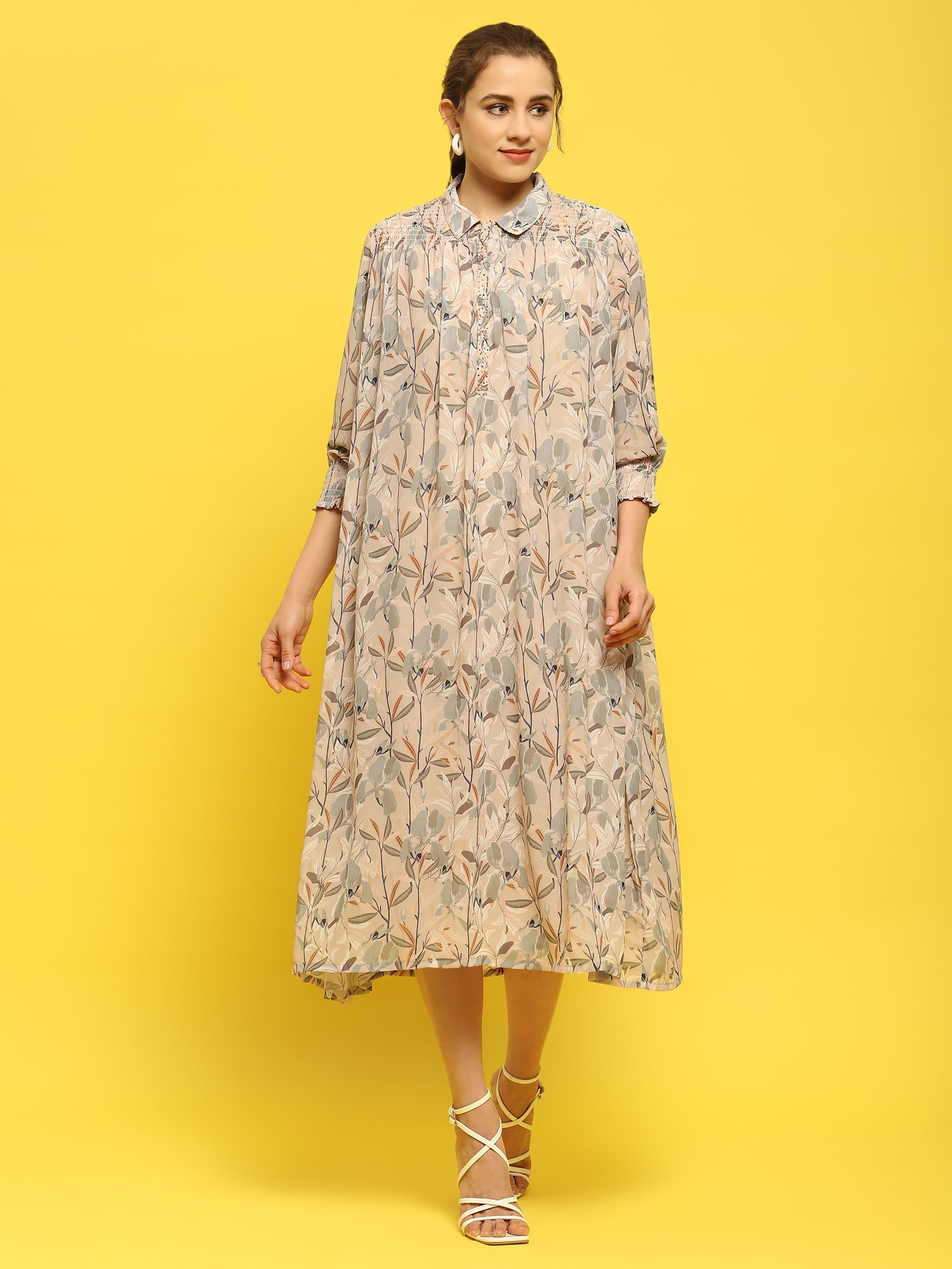 Introducing the Georgette Beige Abstract Print Dress, a fusion of elegance and versatility designed for both everyday wear and professional settings. This dress features 3/4 sized sleeves and a sophisticated shirt collar neckline, enhancing its chic appeal. Crafted from lightweight georgette fabric, it offers a breezy, comfortable fit ideal for all-day wear. The abstract print adds a modern twist, elevating its charm and making it a standout piece in your wardrobe. Its flattering fit and flare silhouette accentuates your figure gracefully, ensuring a flattering look on any occasion. Whether you're attending meetings or enjoying a casual outing, the Georgette Beige Abstract Print Dress promises to keep you stylish and confident. Embrace effortless sophistication and timeless style with this wardrobe essential that seamlessly transitions from day to evening with ease.