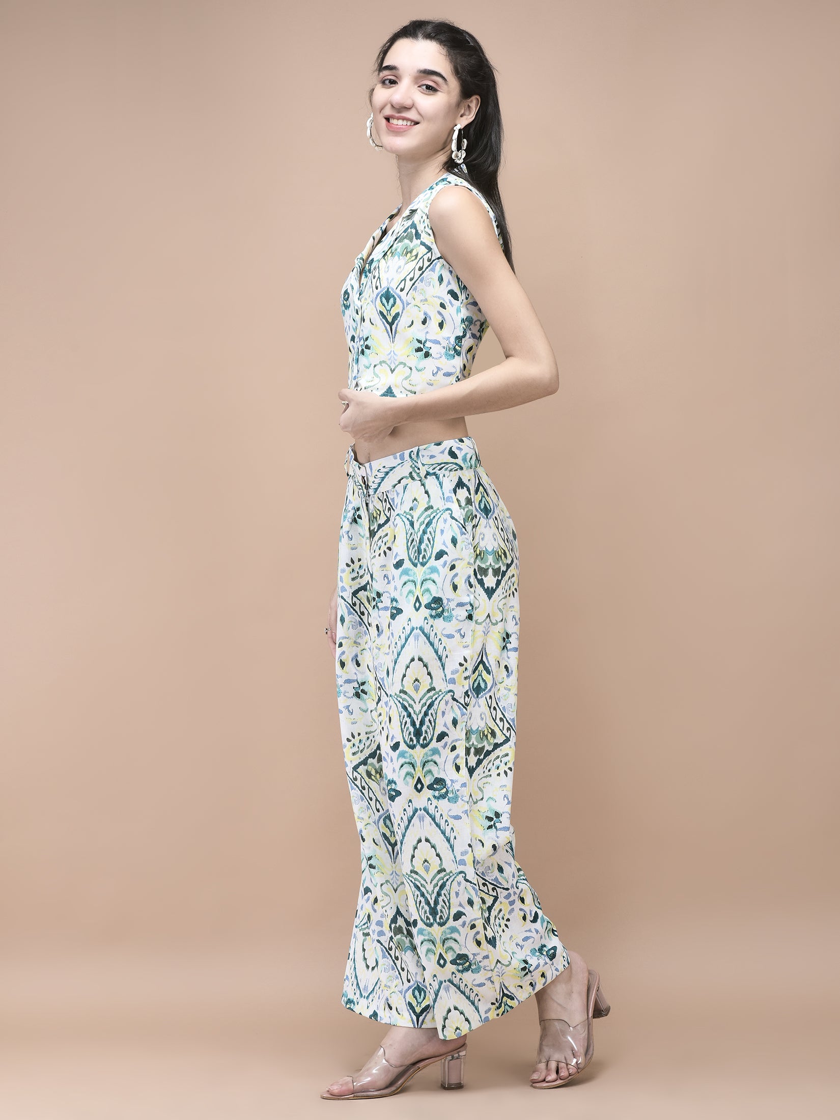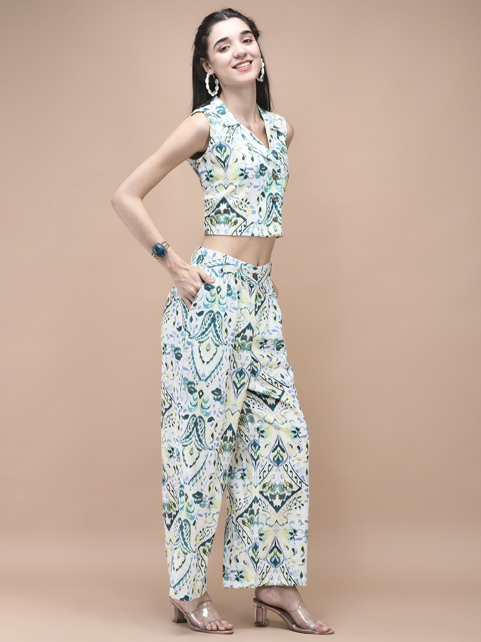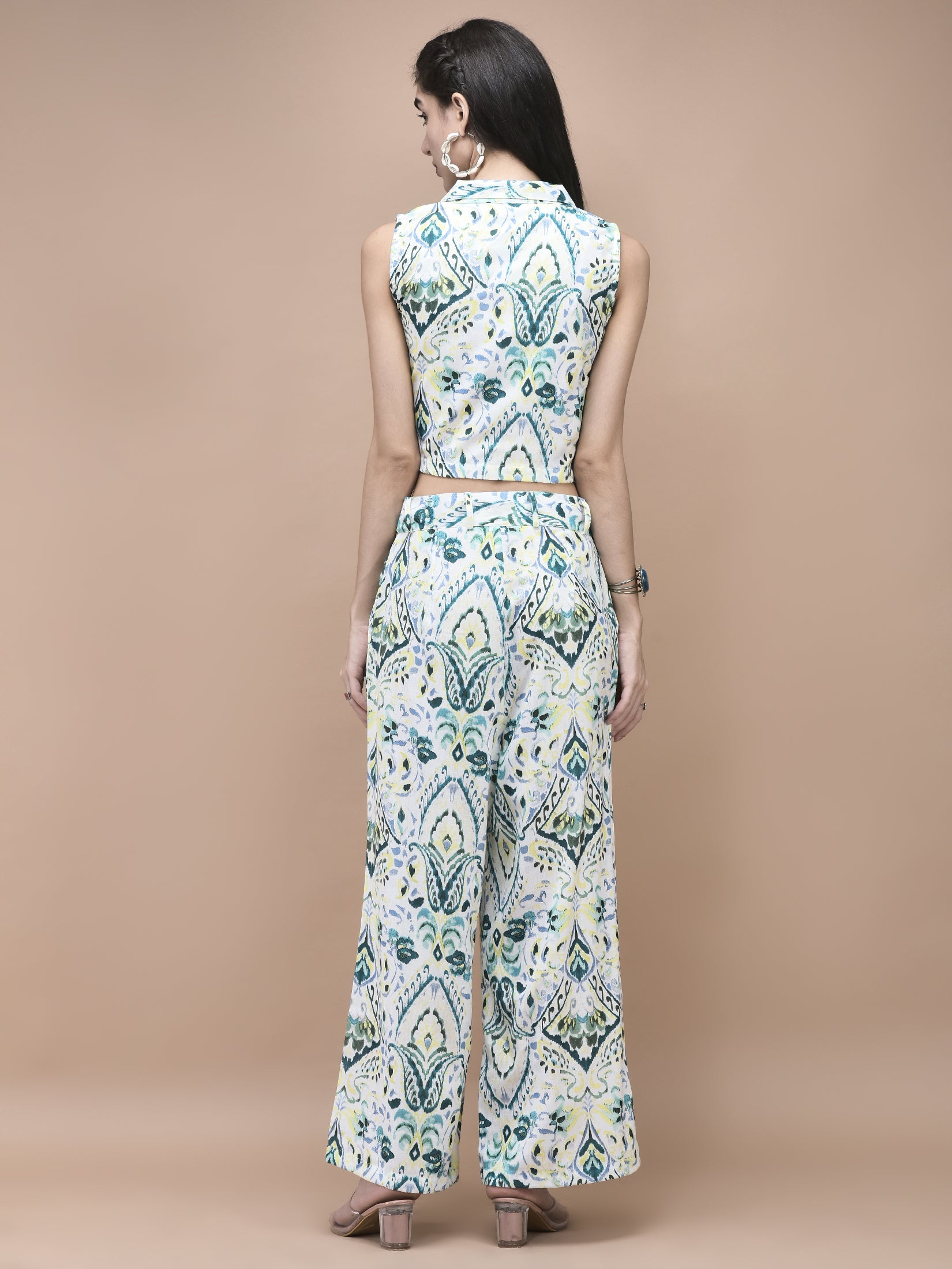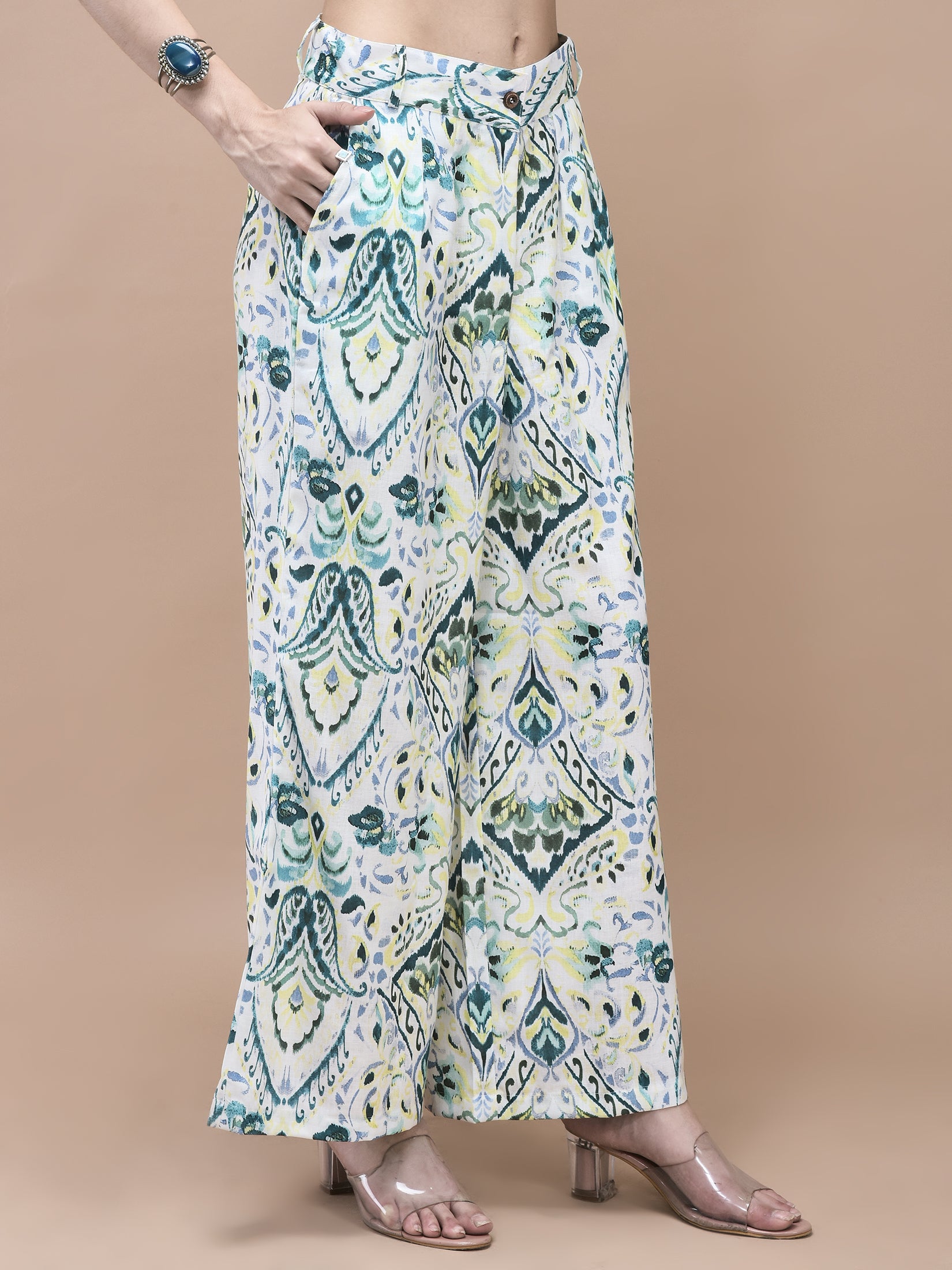 Refresh your wardrobe with the relaxed elegance of our Women Linen Green Ikat Print Co-Ord Set. This set provides the ideal balance of comfort and tradition due to the is made of breathable linen. The timeless ikat print in earthy green gives a bold yet grounded vibe - ideal for days when you want to stand out while staying effortlessly chic.