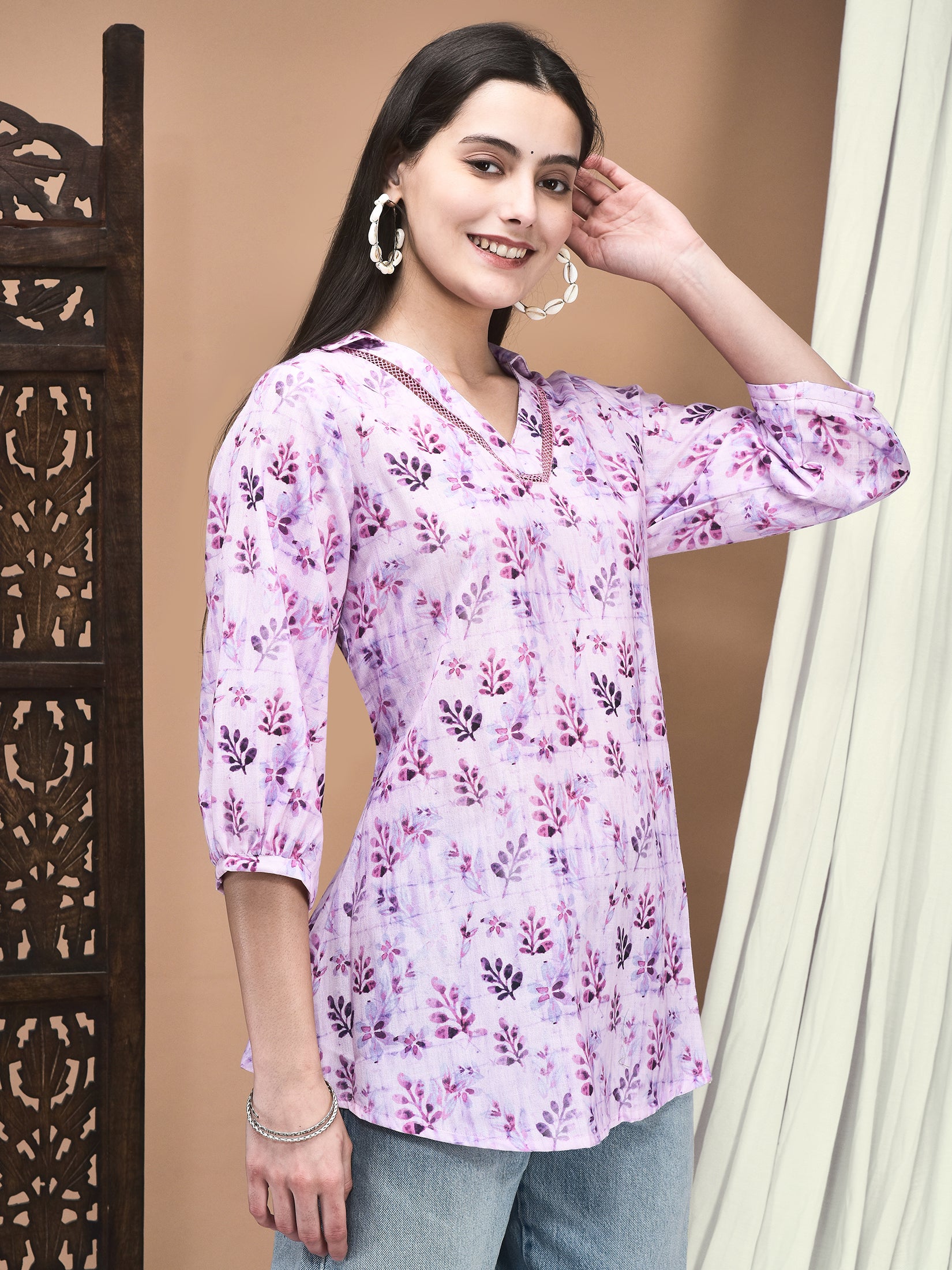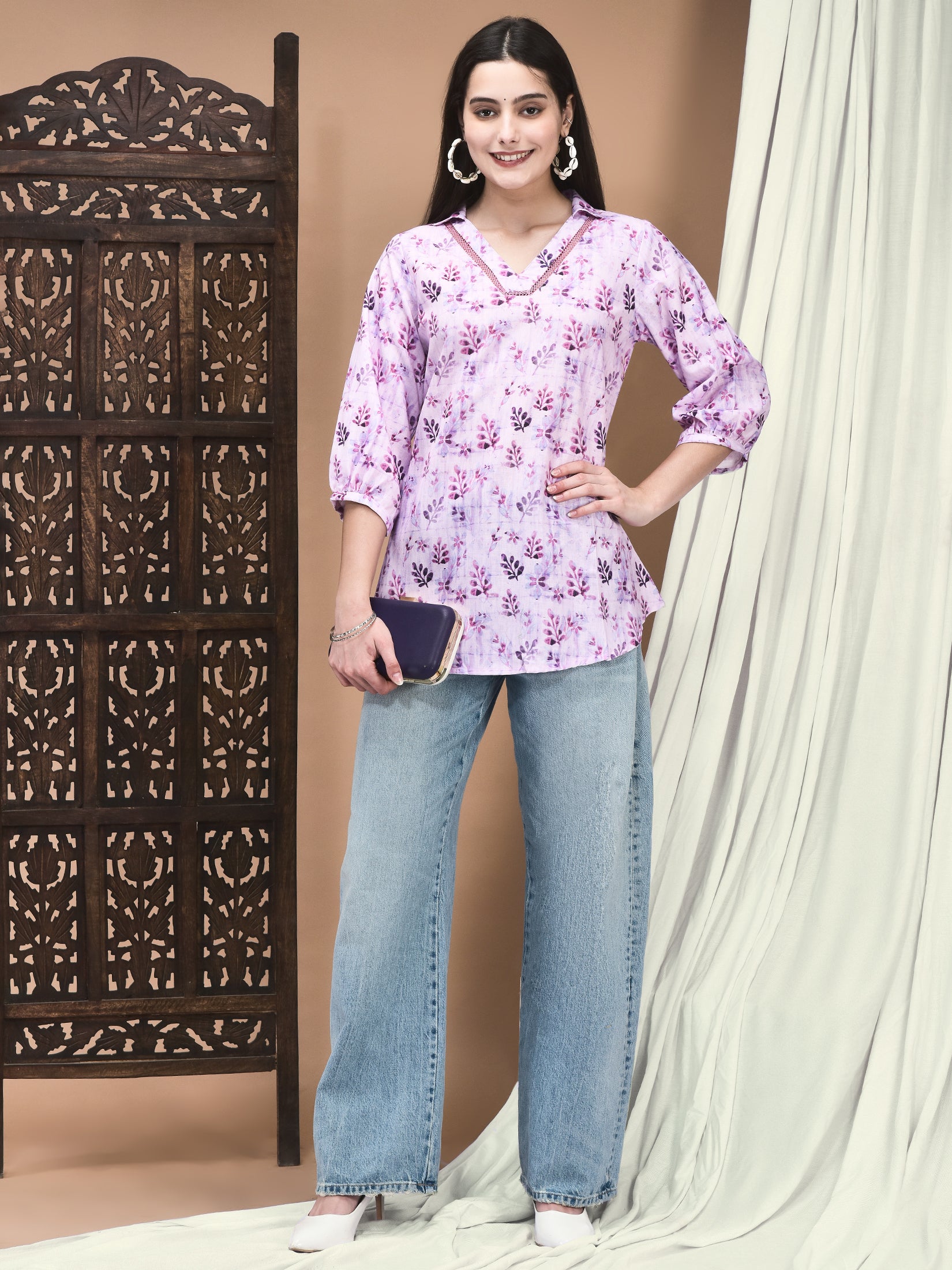 Women Linen Pink & Purple Texture Print Tunic Skip to content