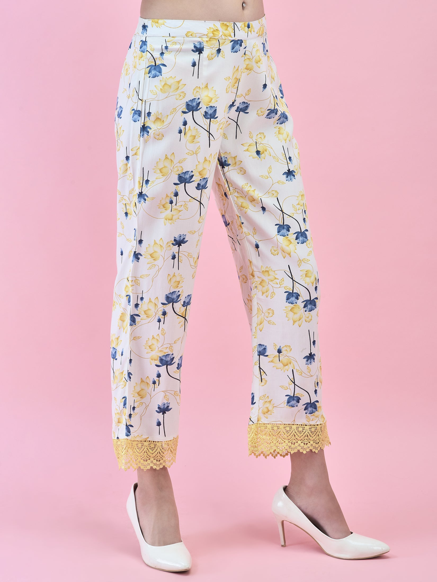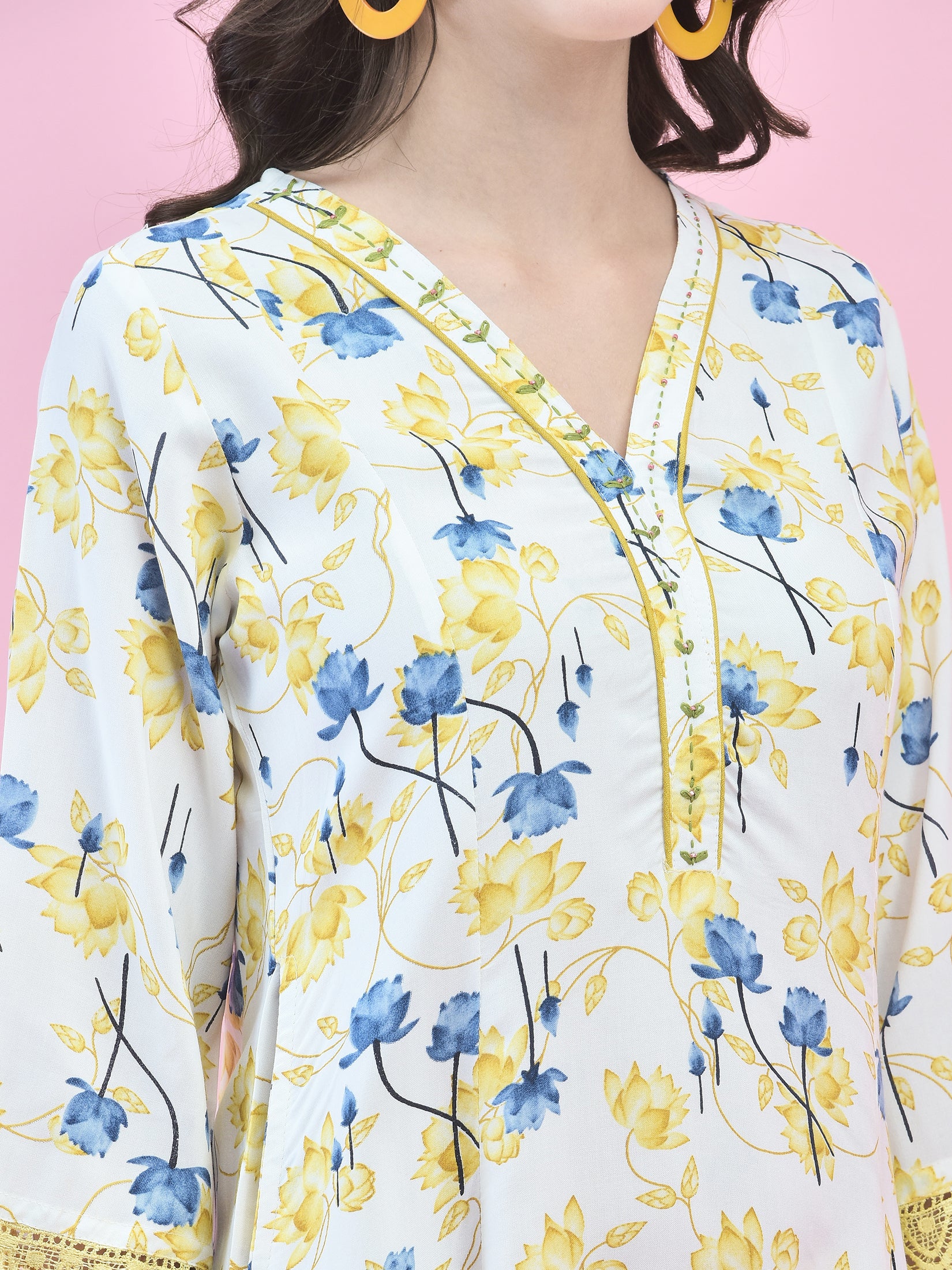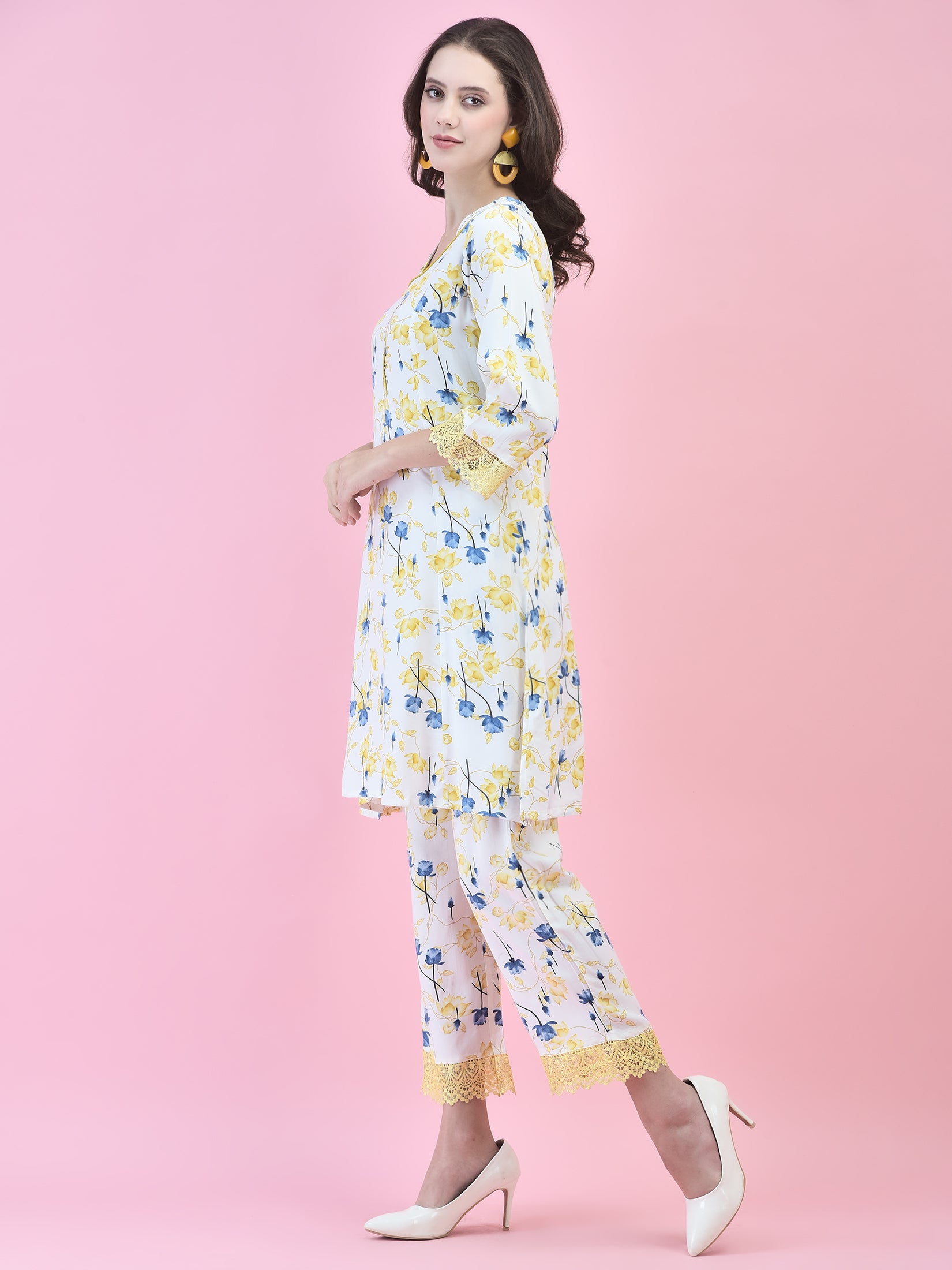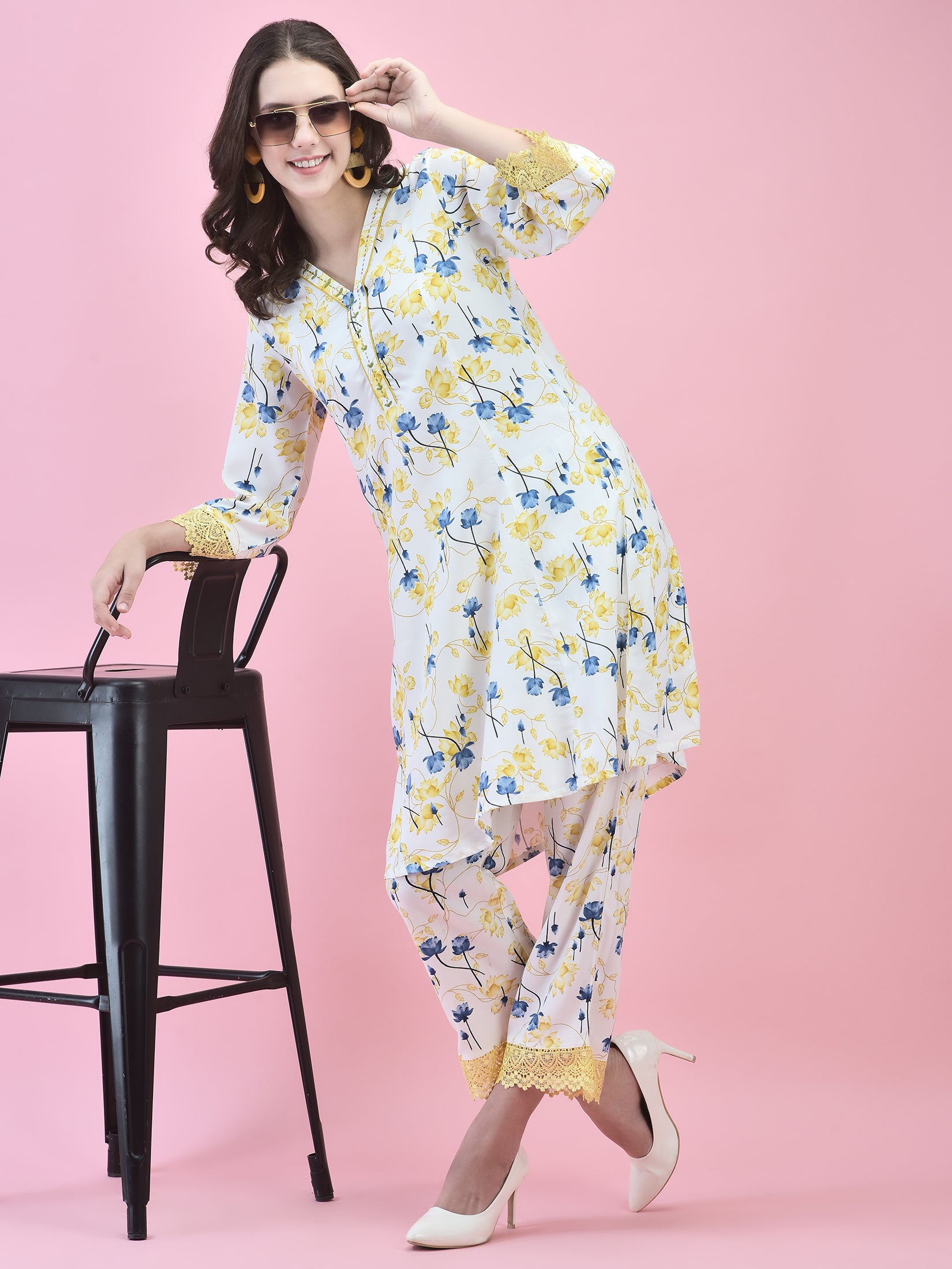 Women Liva (Rayon) White Floral Print Co-Ord Set