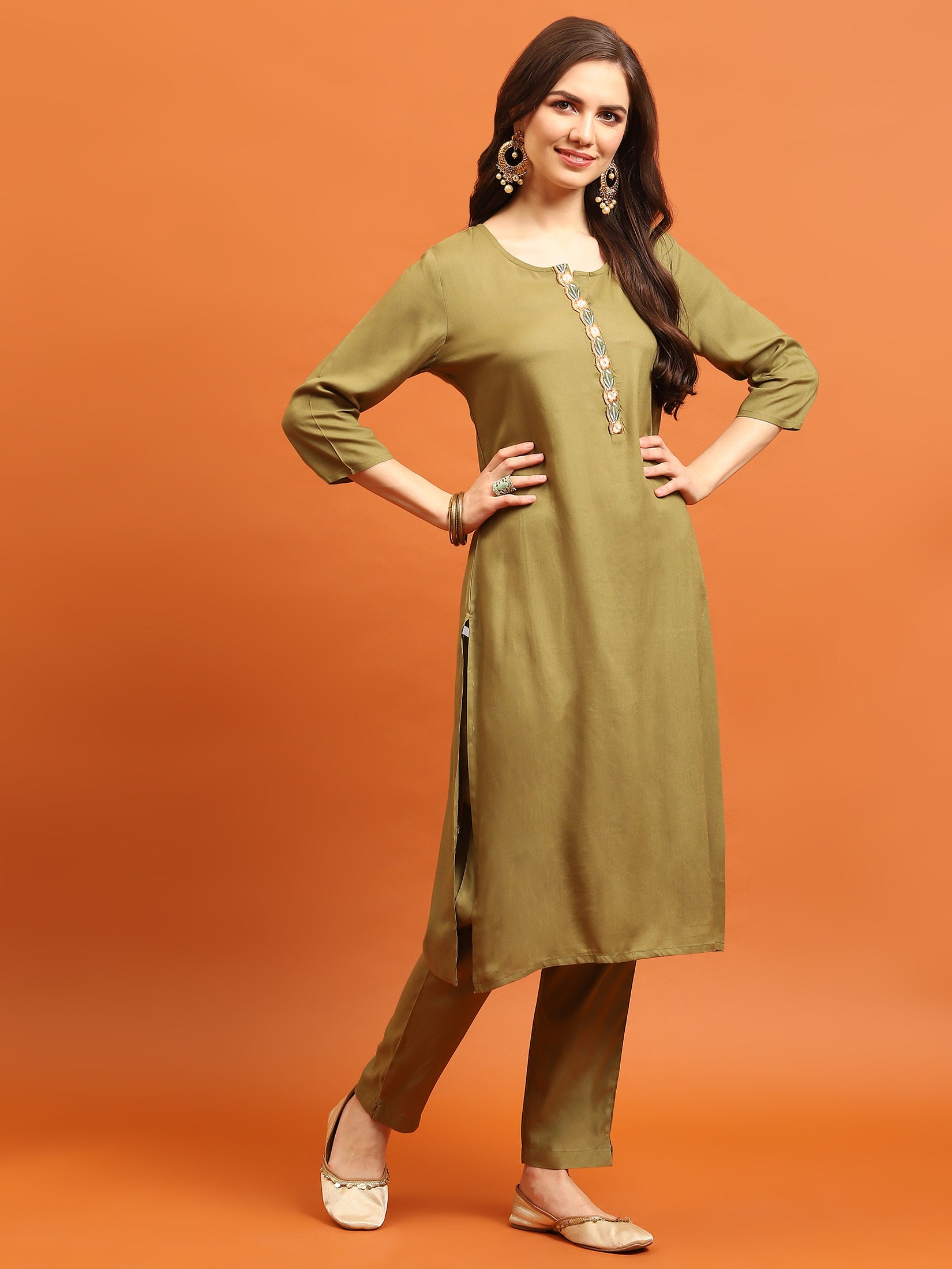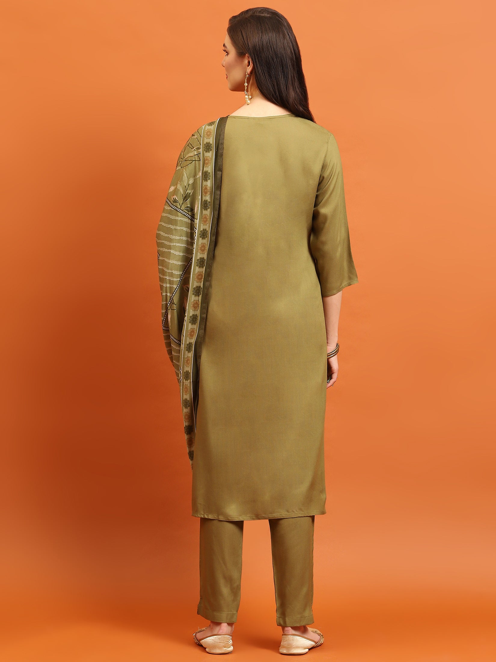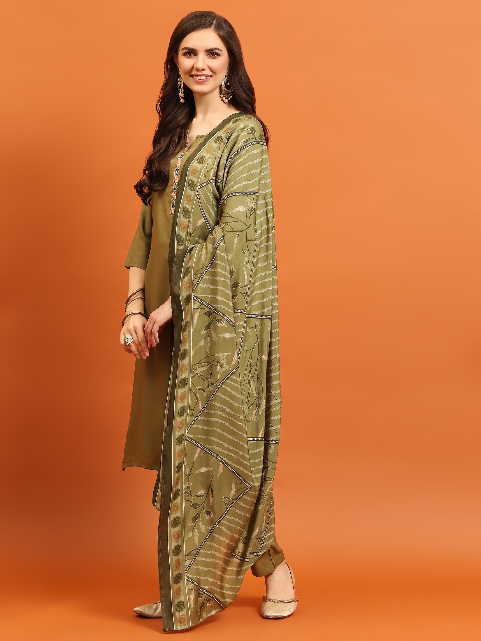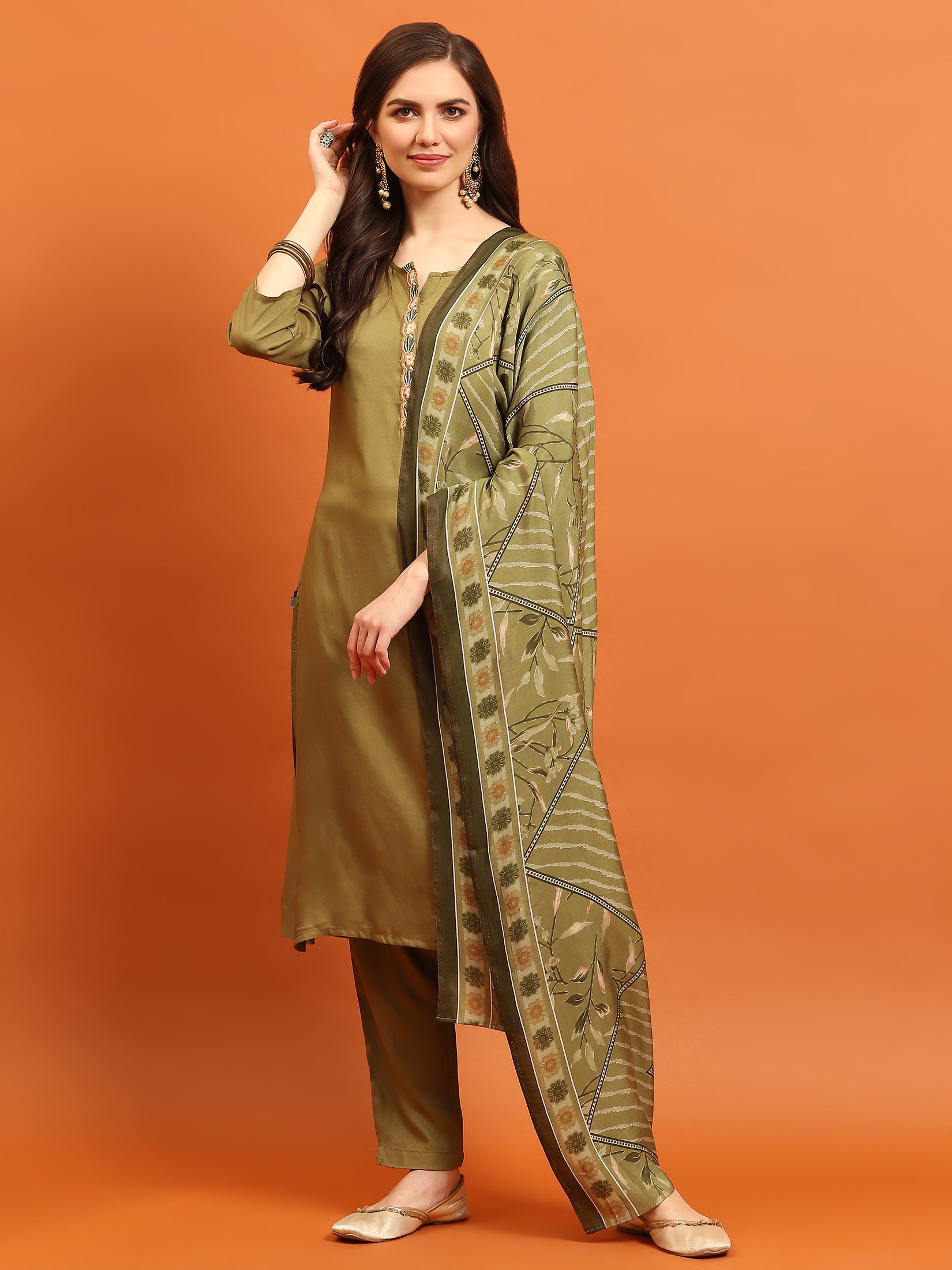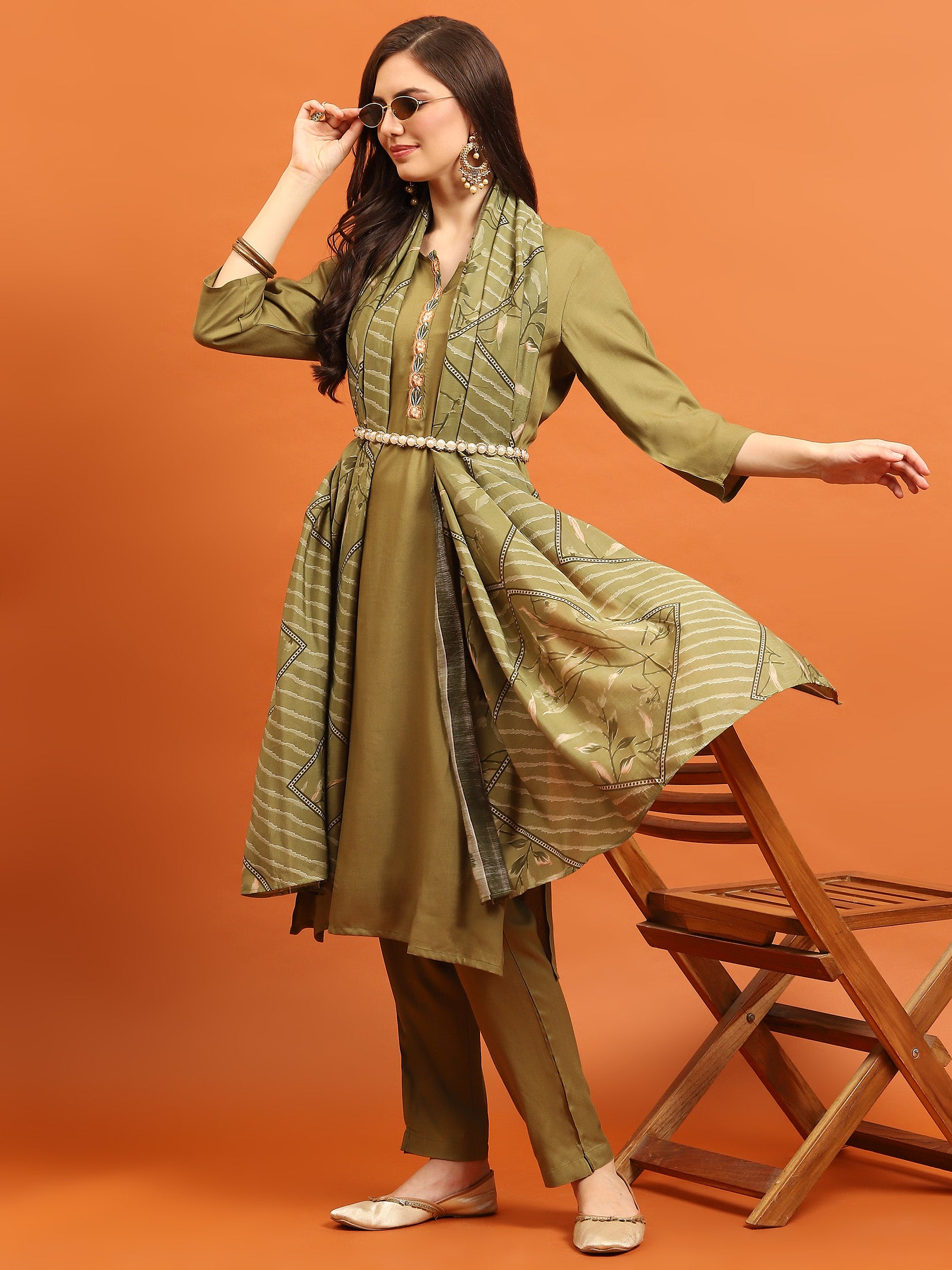 Olive Printed Kurta Trouser Dupatta at Best Cost at SHREE Skip to content