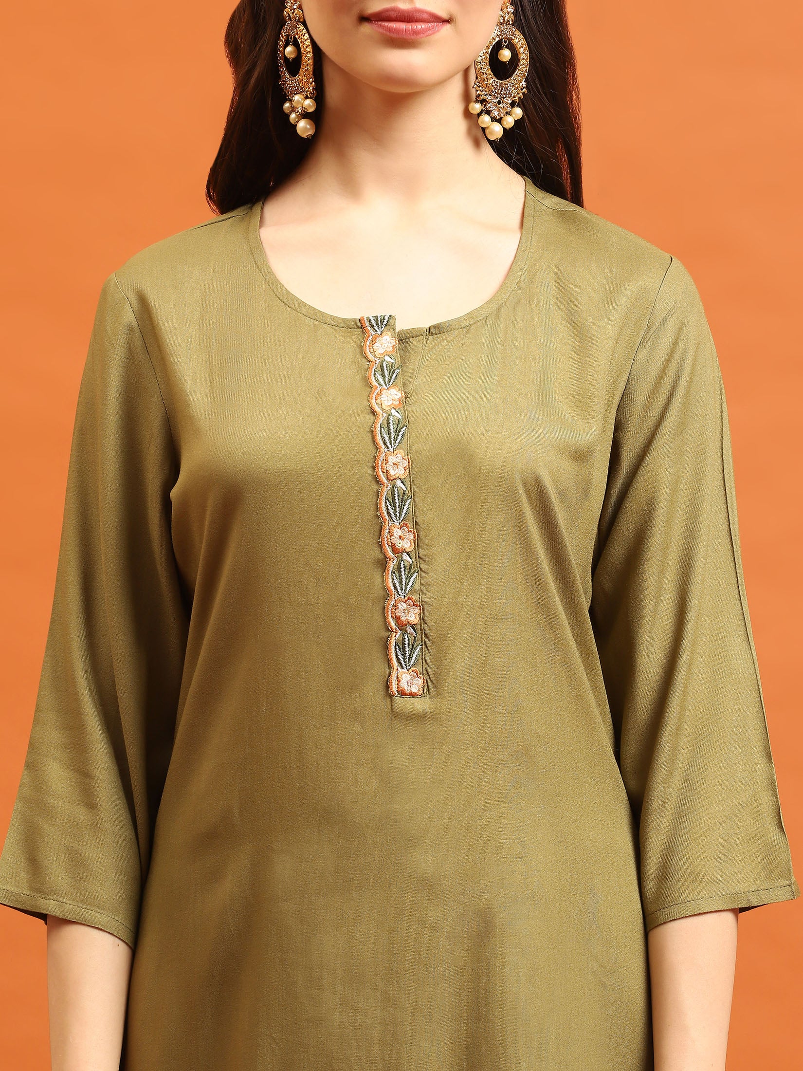 Women Olive Round Neck Kurta Trouser Dupatta Sale priceRs. 1,139.00 Regular priceRs. 3,799.00