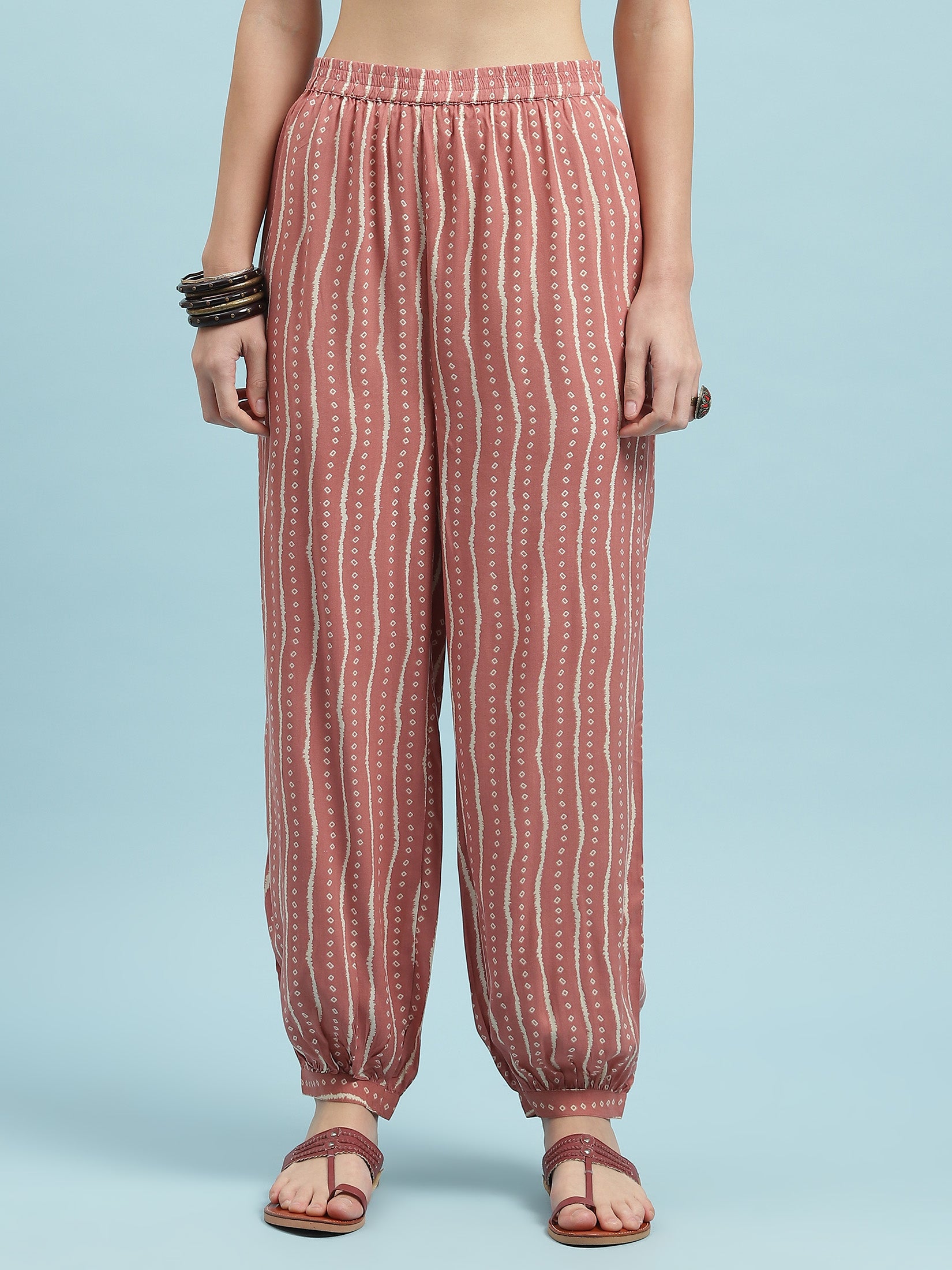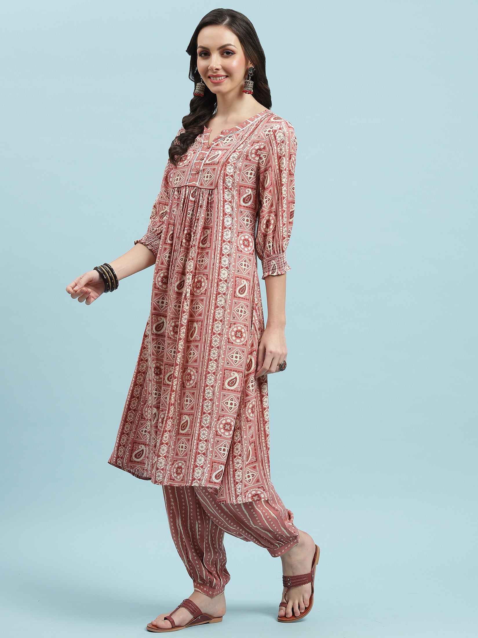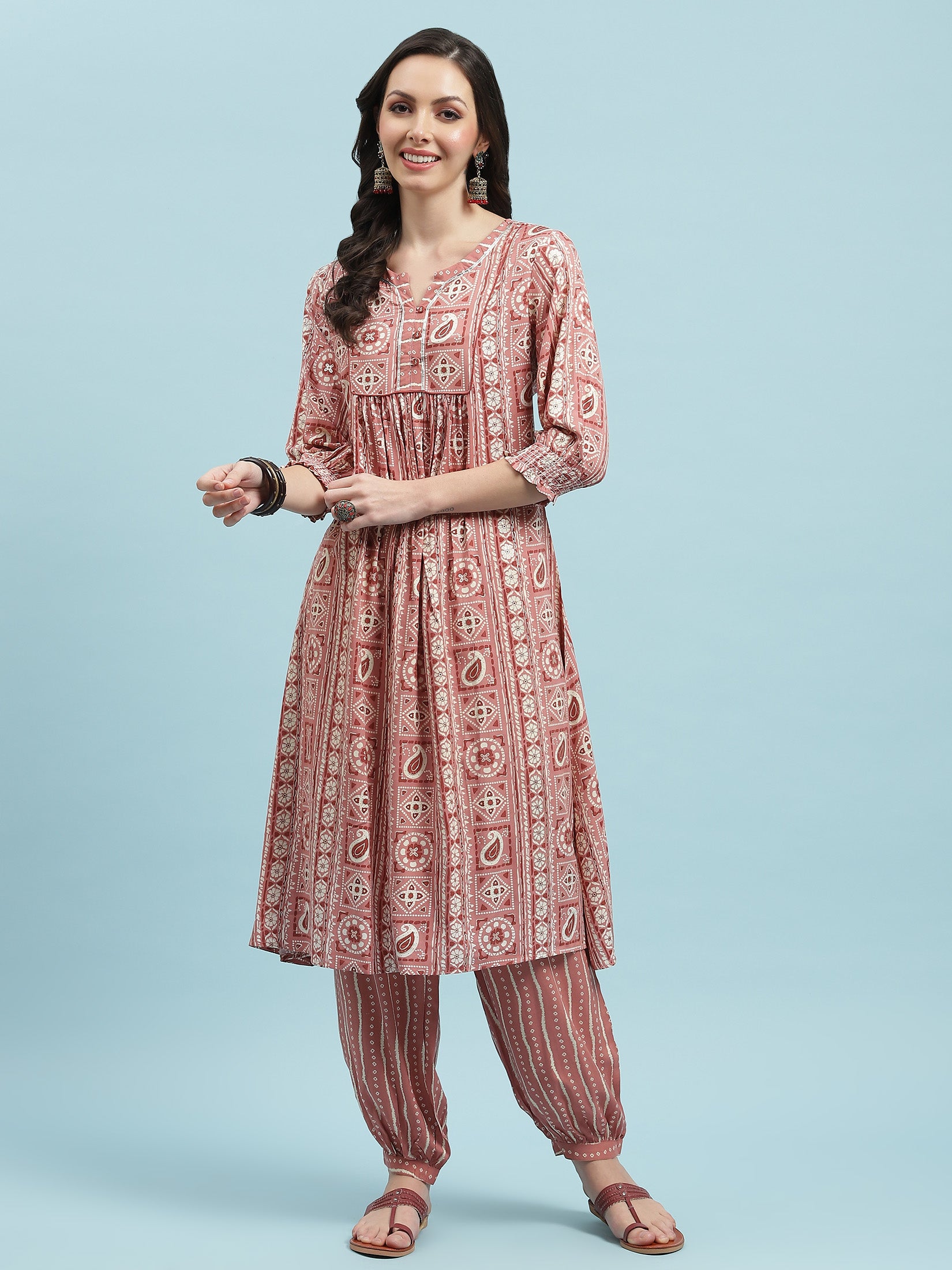 Women Liva Rayon Pink Geometric Print Kurta With Comfort Pant