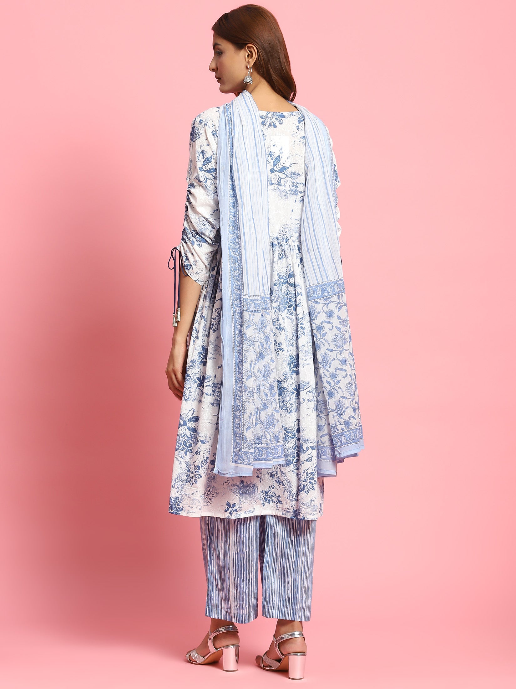 Women White Floral Printed Kurta Comfort Pant Dupatta